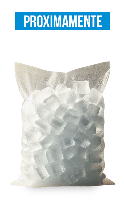 Hielo cristalino hecho con agua ultra pura. Perfecto para alimentos y bebidas. Disponible pronto en dos formatos.